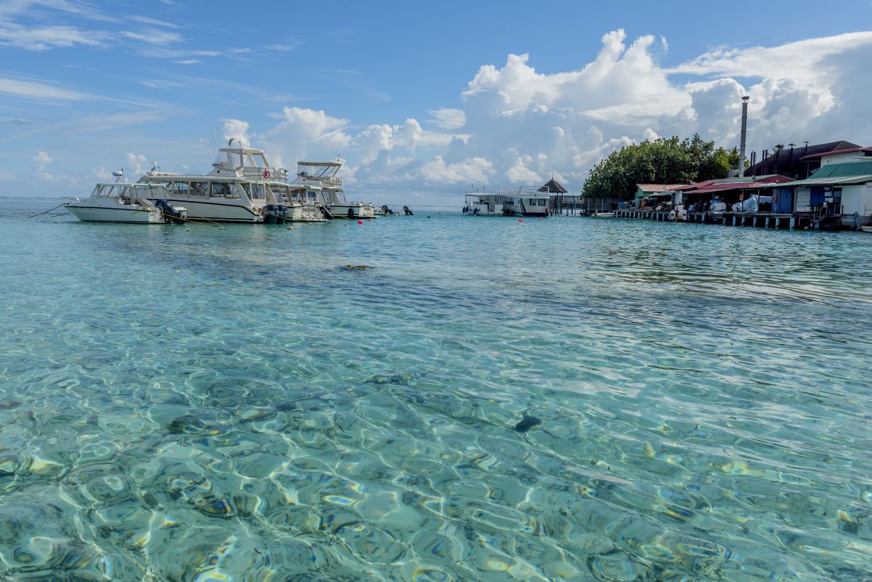 Dascyllus aruanus a Chaetodon spp., Maledivy